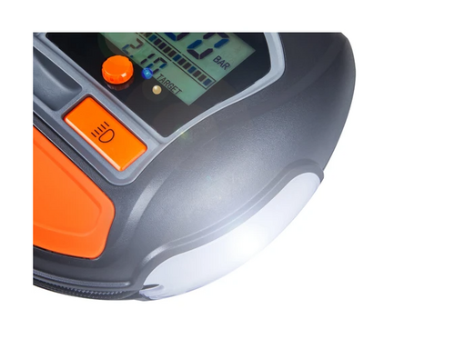 Kolay ve doğru basınç okumaları için arkadan aydınlatmalı dijital ekrana sahip hızlı bir dijital lastik şişiricidir.